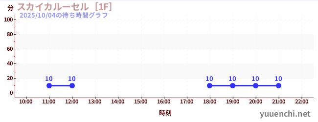 2025/10/04の待ち時間グラフ (スカイカルーセル[1F])