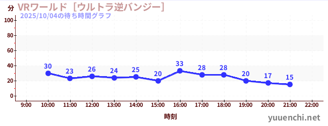 2025/10/04の待ち時間グラフ (VRワールド[ウルトラ逆バンジー])