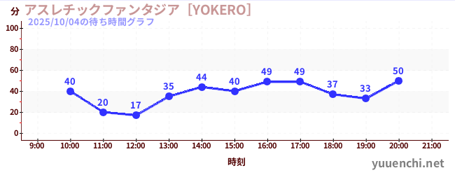2025/10/04の待ち時間グラフ (アスレチックファンタジア[YOKERO])