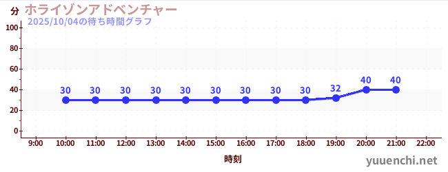 2025/10/04の待ち時間グラフ (ホライゾンアドベンチャー)