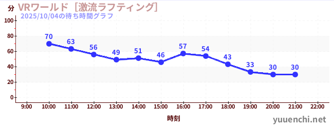 2025/10/04の待ち時間グラフ (VRワールド[激流ラフティング])