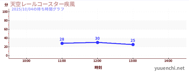 2025/10/04の待ち時間グラフ (天空レールコースター疾風)