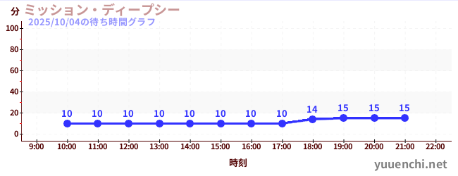 2025/10/04の待ち時間グラフ (ミッション・ディープシー)