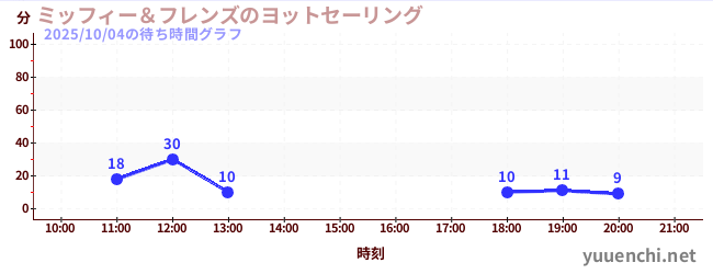 2025/10/04の待ち時間グラフ (ミッフィー&フレンズのヨットセーリング)