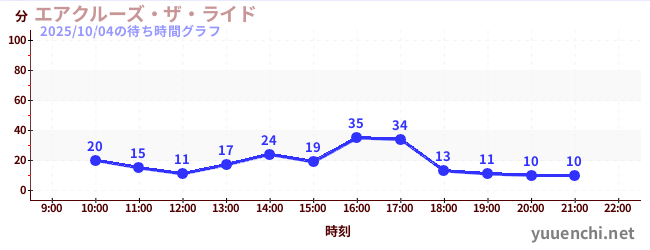 2025/10/04の待ち時間グラフ (エアクルーズ・ザ・ライド)