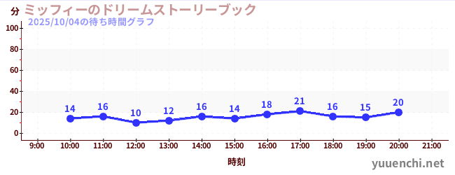 2025/10/04の待ち時間グラフ (ミッフィーのドリームストーリーブック)