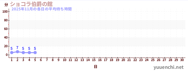 2025/11の一日平均待ち時間 (ショコラ伯爵の館)