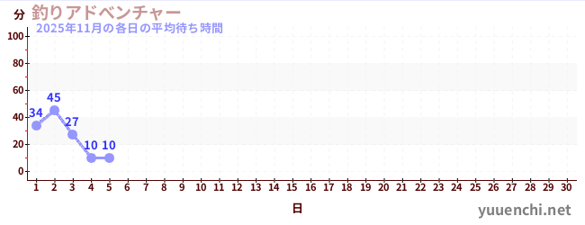 2025/11の一日平均待ち時間 (釣りアドべンチャー)