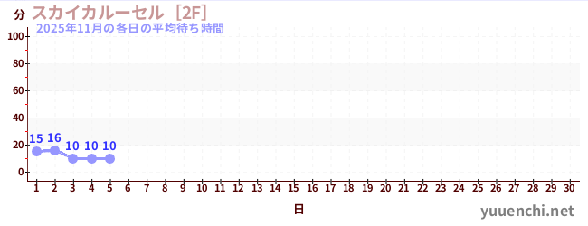 2025/11の一日平均待ち時間 (スカイカルーセル[2F])