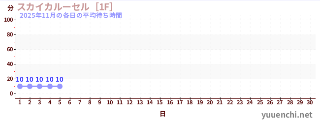 2025/11の一日平均待ち時間 (スカイカルーセル[1F])