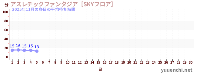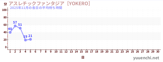 2025/11の一日平均待ち時間 (アスレチックファンタジア[YOKERO])