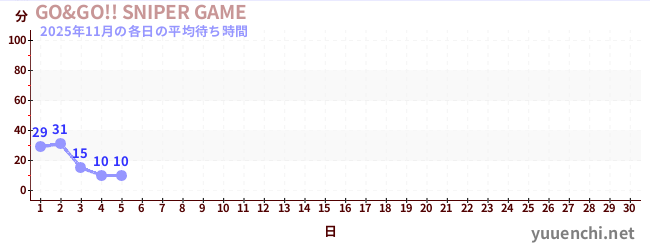 2025/11の一日平均待ち時間 (GO&GO!! SNIPER GAME)