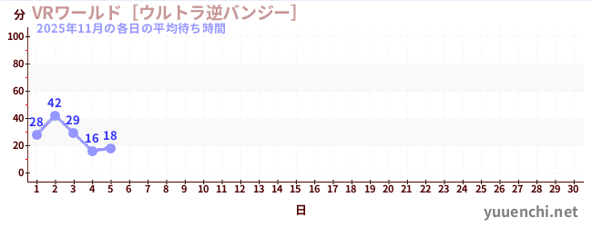 2025/11の一日平均待ち時間 (VRワールド[ウルトラ逆バンジー])