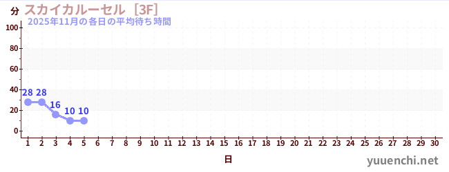 2025/11の一日平均待ち時間 (スカイカルーセル[3F])