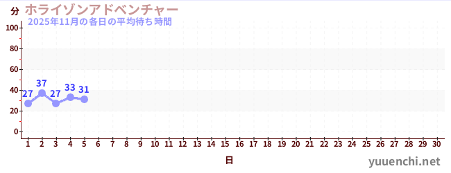 2025/11の一日平均待ち時間 (ホライゾンアドベンチャー)