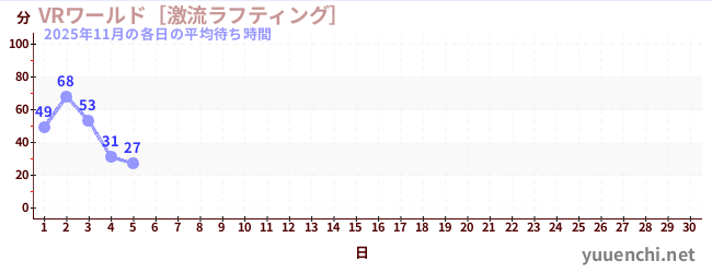 2025/11の一日平均待ち時間 (VRワールド[激流ラフティング])