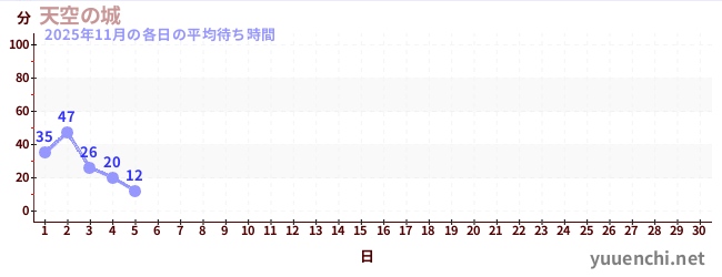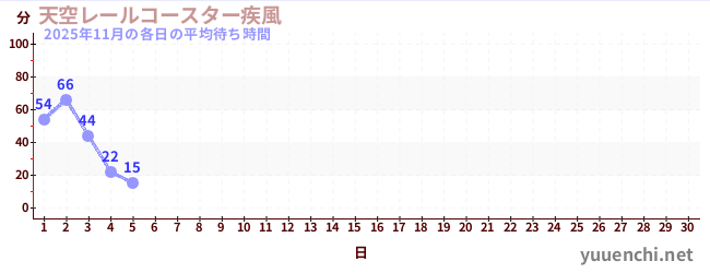 2025/11の一日平均待ち時間 (天空レールコースター疾風)