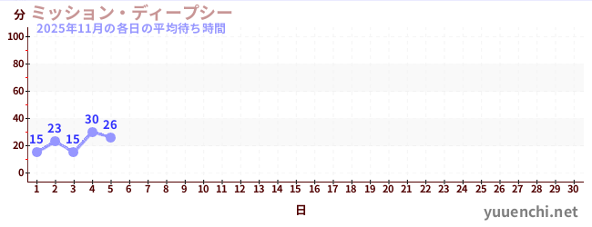 2025/11の一日平均待ち時間 (ミッション・ディープシー)