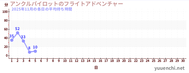 2025/11の一日平均待ち時間 (アンクルパイロットのフライトアドベンチャー)