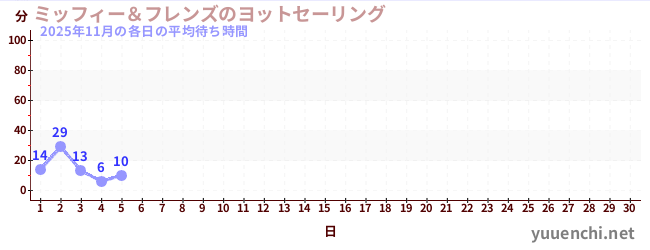 2025/11の一日平均待ち時間 (ミッフィー&フレンズのヨットセーリング)