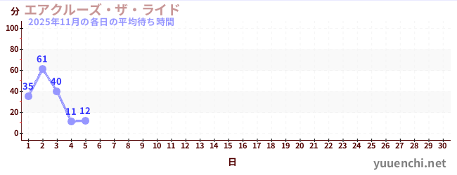 2025/11の一日平均待ち時間 (エアクルーズ・ザ・ライド)