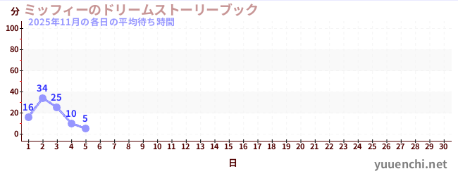2025/11の一日平均待ち時間 (ミッフィーのドリームストーリーブック)