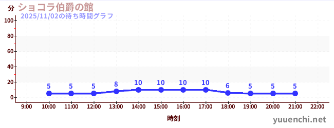 2025/11/02の待ち時間グラフ (ショコラ伯爵の館)