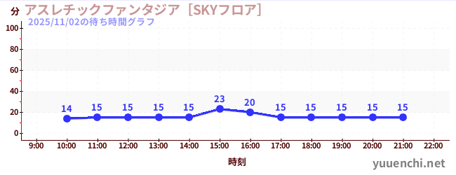 2025/11/02の待ち時間グラフ (アスレチックファンタジア[YOKERO])