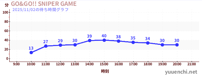 2025/11/02の待ち時間グラフ (GO&GO!! SNIPER GAME)