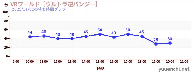 2025/11/02の待ち時間グラフ (VRワールド[ウルトラ逆バンジー])