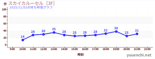 2025/11/02の待ち時間グラフ (スカイカルーセル[3F])