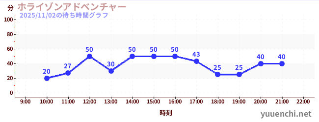 2025/11/02の待ち時間グラフ (ホライゾンアドベンチャー)