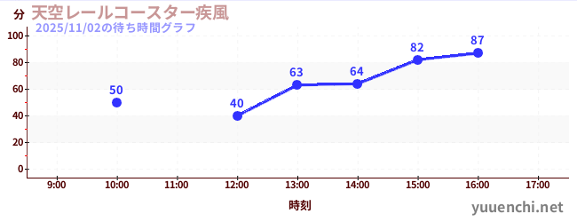 2025/11/02の待ち時間グラフ (天空レールコースター疾風)