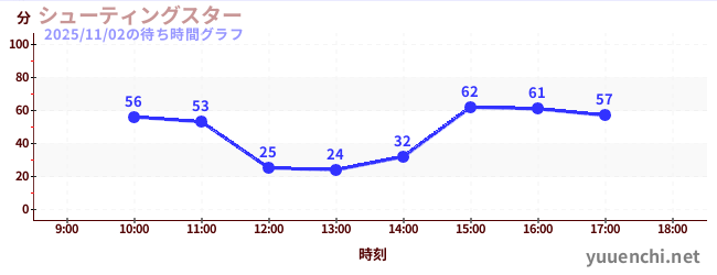 2025/11/02の待ち時間グラフ (シューティングスター)