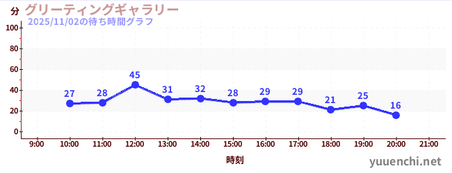 2025/11/02の待ち時間グラフ (グリーティングギャラリー)