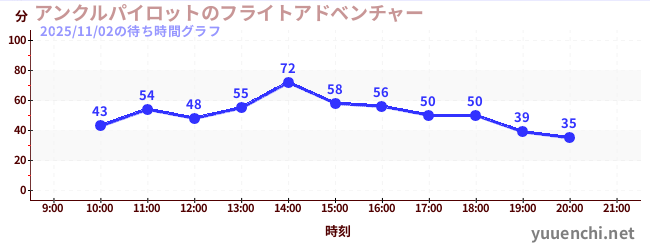 2025/11/02の待ち時間グラフ (アンクルパイロットのフライトアドベンチャー)