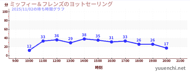 2025/11/02の待ち時間グラフ (ミッフィー&フレンズのヨットセーリング)