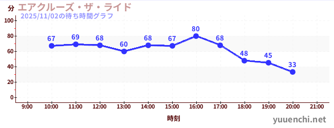 2025/11/02の待ち時間グラフ (エアクルーズ・ザ・ライド)