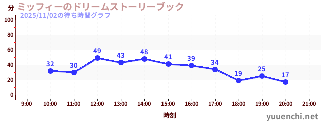 2025/11/02の待ち時間グラフ (ミッフィーのドリームストーリーブック)