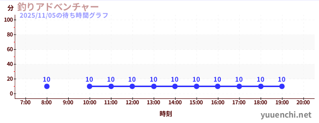 2025/11/05の待ち時間グラフ (釣りアドべンチャー)