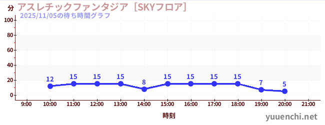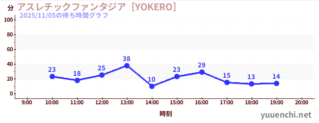2025/11/05の待ち時間グラフ (アスレチックファンタジア[YOKERO])