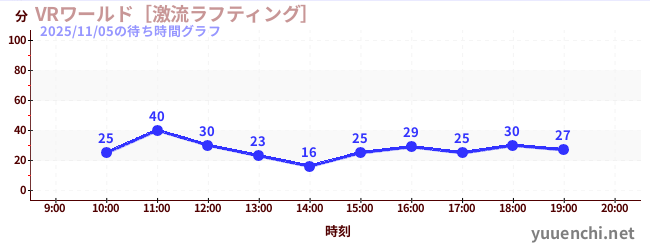 2025/11/05の待ち時間グラフ (VRワールド[激流ラフティング])