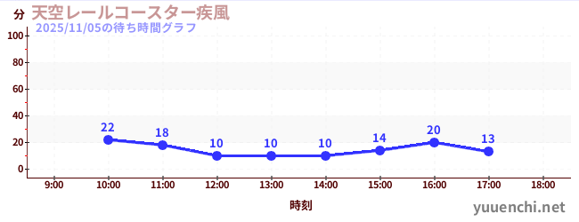 2025/11/05の待ち時間グラフ (天空レールコースター疾風)