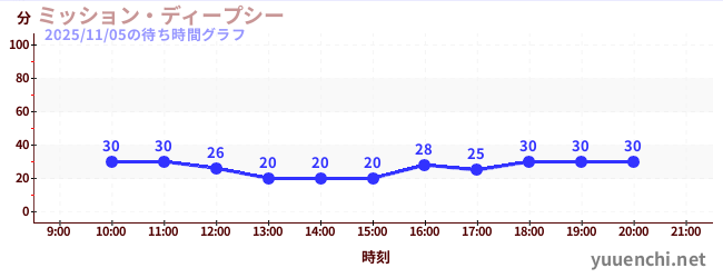 2025/11/05の待ち時間グラフ (ミッション・ディープシー)