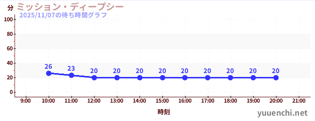 2025/11/07の待ち時間グラフ (ミッション・ディープシー)