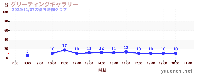 2025/11/07の待ち時間グラフ (グリーティングギャラリー)
