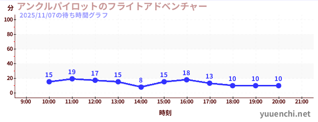 2025/11/07の待ち時間グラフ (アンクルパイロットのフライトアドベンチャー)
