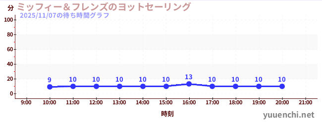 2025/11/07の待ち時間グラフ (ミッフィー&フレンズのヨットセーリング)