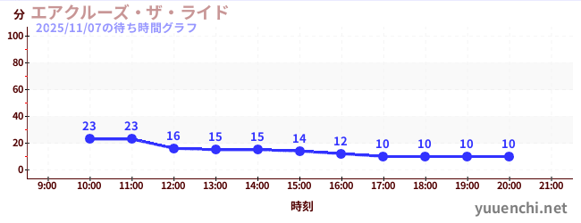 2025/11/07の待ち時間グラフ (エアクルーズ・ザ・ライド)