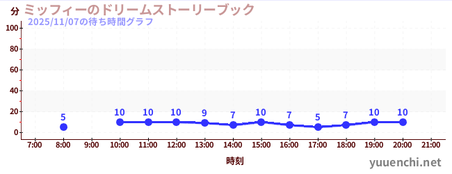 2025/11/07の待ち時間グラフ (ミッフィーのドリームストーリーブック)